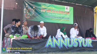 kegiatan yang sudah berjalan rutin selama dua tahun ini bertempat di halaman Lembaga Pondok Pesantren (LPP) Annusyur yang beralamat di dusun Cecek Desa Aeng Panas Kecamatan Pragaan Kabupaten Sumenep yang dihadiri oleh semua pengurus yayasan, alumni dan siswa LPP Annusyur.