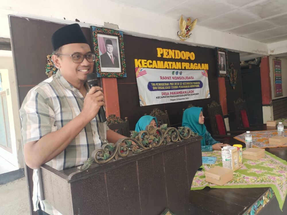 KIMPRAGAAN.COM, PRAGAAN – Camat Pragaan Indra Hernawan dalam kegiatan Konsolidasi Tim Penggerak PKK Kecamatan dan Desa di kantor kecamatan Pragaan mengharapkan Pengurus Tim Penggerak PKK Kecamatan menjadi agen penggerak perubahan keluarga dan masyarakat di desa.