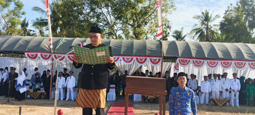 KIMPRAGAAN.COM, PRAGAAN – Camat Pragaan Indra Hernawan pagi tadi memimpin upacara bendera 17 Agustus di lapangan Pakamban Laok Kecamatan Pragaan. Tema yang diusung dalam memperingati HUT Ke-80 Republik Indonesia ini adalah “Bersatu Berdaulat, Rakyat Sejahtera, Indonesia Maju.”