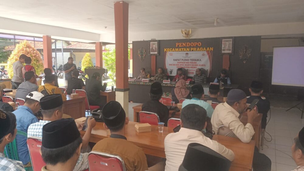 KIMPRAGAAN.COM, PRAGAAN – Hari ini Sabtu (30/11/2024) Panitia Pemilihan Kecamatan (PPK) Pragaan melaksanakan kegiatan Rapat Pleno Terbuka Rekapitulasi Hasil Pemilihan Bupati dan Wakil Bupati, Gubernur dan Wakil Gubernur Jawa Timur. Kegiatan diikuti oleh Forkopimka Kecamatan Pragaan, Panitia Pemilihan Kecamatan, Panwas Kecamatan, serta Panitia Pemungutan Suara (PPS) serta unsur lainnya.