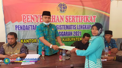 Pemberian Sertifikat Tanah ini sebagai upaya untuk menertibkan administrasi tanah desa, sehingga masyarakat tidak lagi susah payah dalam mengurus surat-surat tanah.