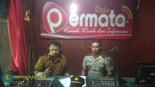 | Kapolsek Prenduan IPTU A. Supriyadi, SH dialog di ruang siar Studio Permata FM |