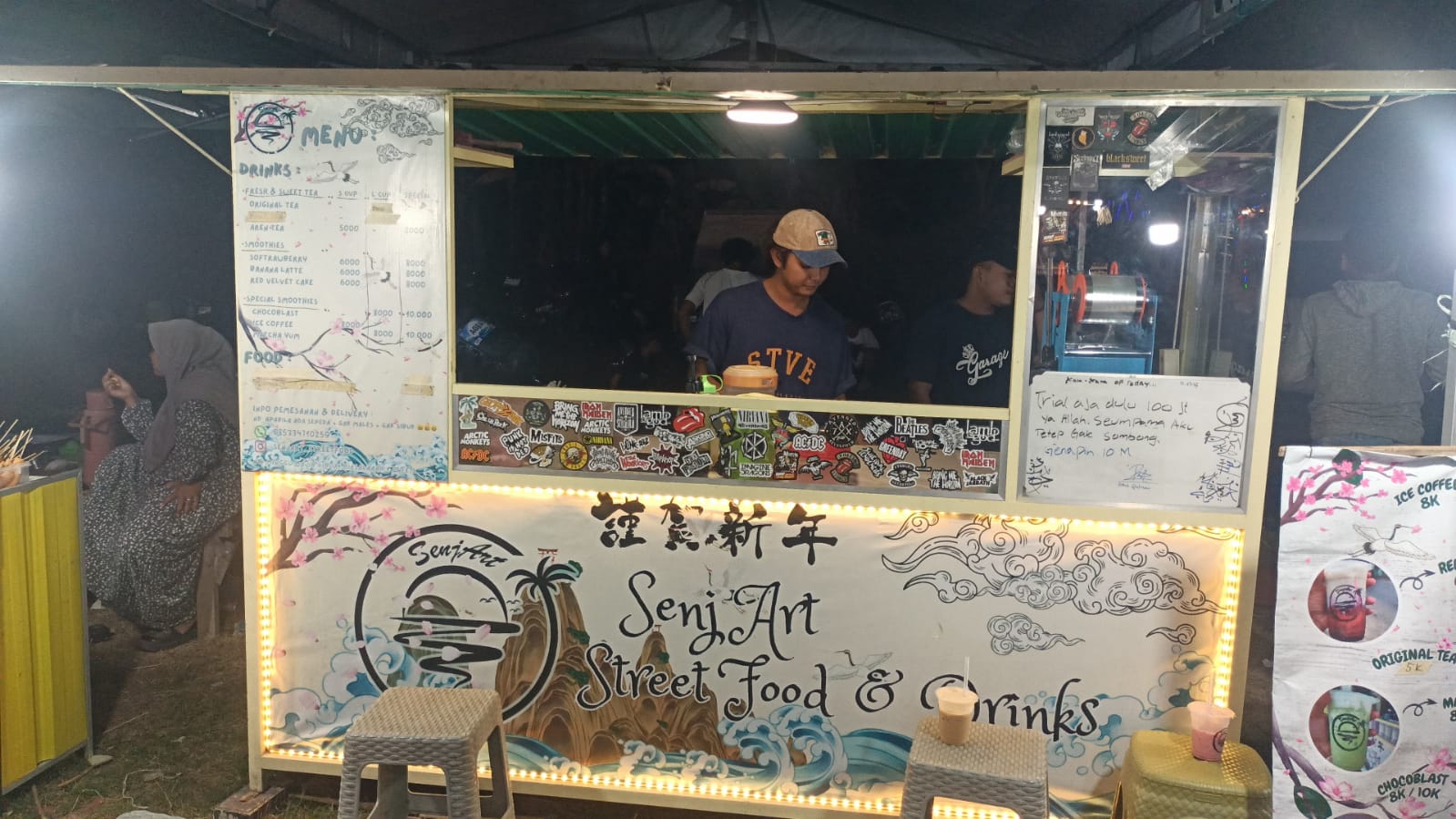Lelaki muda asal Pragaan Laok ini menjual menu jualan original tea, aren tea, soft strawberry, banana latte, red velvet cake, chocoblast, ice cooffe matcha yum.