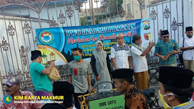 Pragaan – Dalam rangka memerangi pandemi virus Corona atau Covid-19 dibulan Ramadhan Pengurus Wakil Cabang Ikatan Keluarga Alumni Pergerakan Mahasiswa Islam Indonesia (PWC IKA PMII) Kecamatan Pragaan bekerjasama dengan Satuan Tugas (Satgas) siaga Covid-19 Majlis Wakil Cabang Nahdatul Ulama (MWCNU) Pragaan melakukan aksi sosial dengan membagikan puluhan paket sembilan bahan pokok (Sembako) untuk tukang becak.