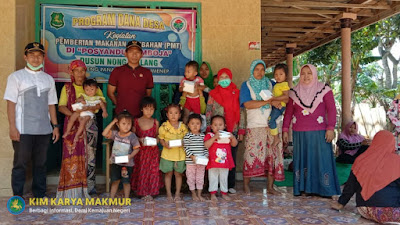 Kepada mereka dianggarkan makanan tambahan yang dialokasikan dari Dana Desa. Kenapa balita, karena balita merupakan salah satu kelompok yang rentan terhadap masalah kesehatan, terutama masalah gizi kurang atau buruk.